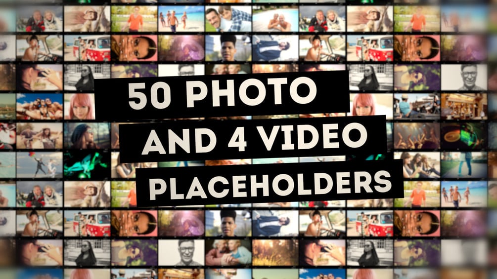 Each of the 50 photos is it’s own animated scene so you can easily edit the timeline to use just what you need.